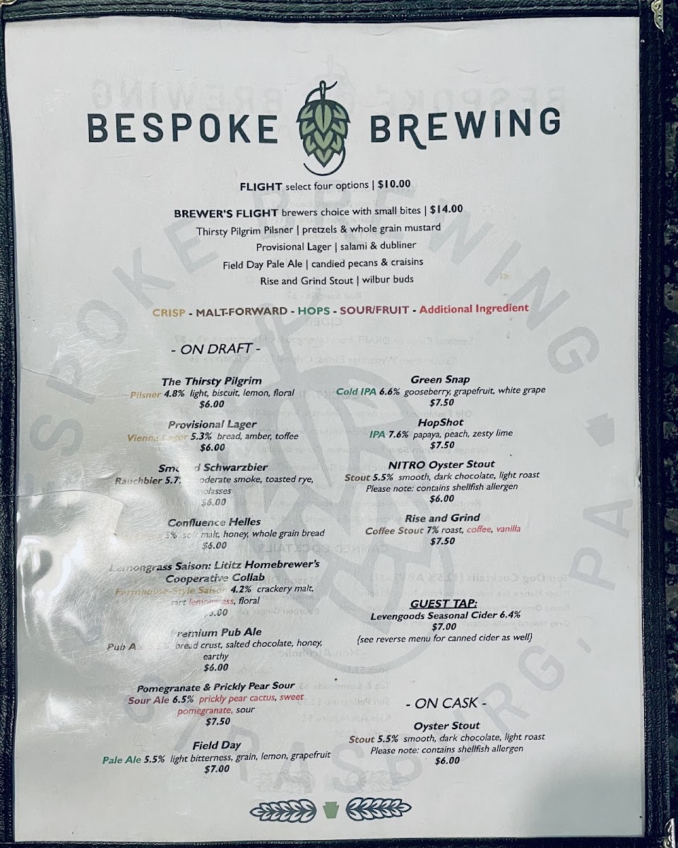 Welcome to the delightful world of Bespoke Brewing, a hidden gem located in Ronks, PA. Nestled at 226 Gap Rd Suite 4, this brewpub offers a unique fusion of flavors and an inviting atmosphere perfect for any occasion. From the moment you step inside, you're greeted by a chic, white-and-wood interior that exudes both warmth and sophistication; it sets the stage for an enjoyable dining experience.